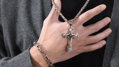 Luce una combinación moderna y elegante con este exclusivo set de collar y pulsera de acero inoxidable, diseñado para hombres con carácter, presencia y fe.